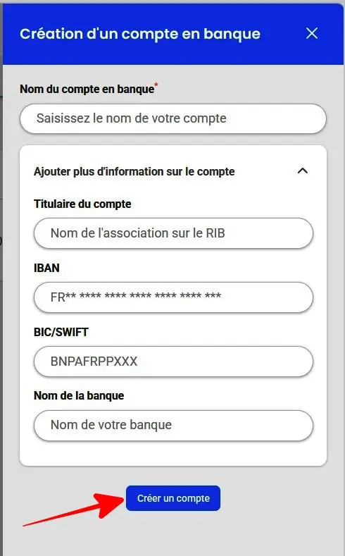 Voici les champs Ă remplir et comment les configurer pour un compte bancaire :